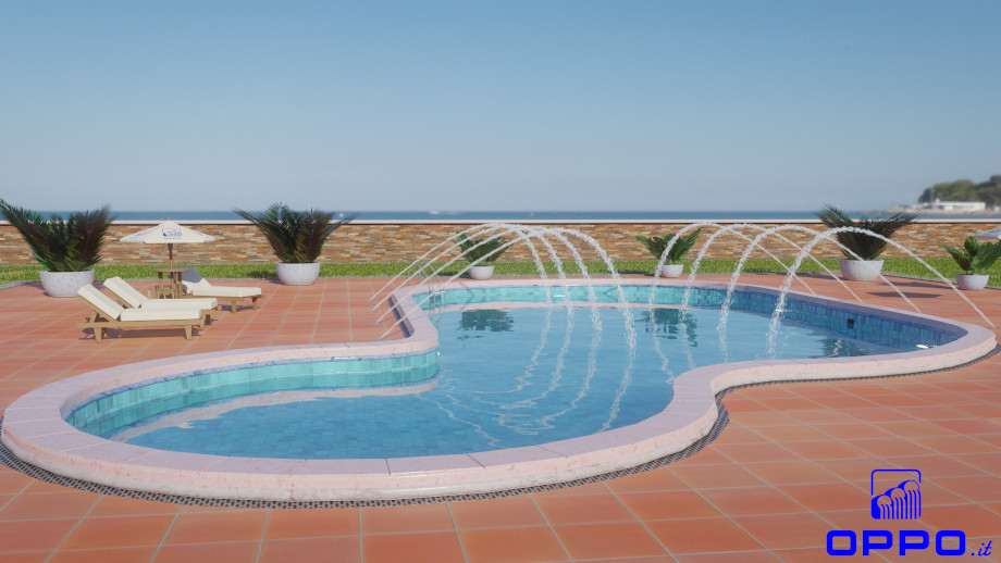 Immagini Floor-Kit PAR/LED9 FO-20, con effetto a getto compatto, installati a bordo piscina
